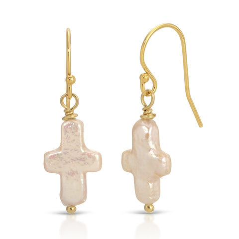 Charity Freshwater Pearl Cross Earrings